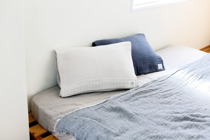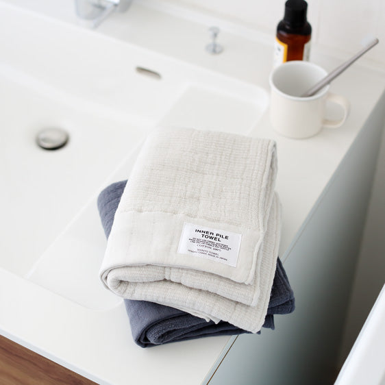 Traditional shuttle looms are expertly operated by hand, taking time and care to produce our INNER PILE. This towel has two outer layers of baby-soft gauze with an inner layer of highly absorbent pile. Use it after bathing or washing, to cover your pillow or as a blanket—thick and fluffy yet soft and light, this is our reinvention of the classic towel.